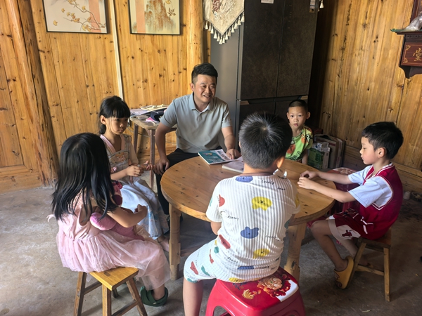 “小河邊、池塘旁,沒有大人別靠近……”“愛心爸爸”楊萬倫一邊教孩子誦讀防溺水兒歌,一邊在筆記本上記錄孩子的暑期動態(tài)?!拔易约阂彩莾蓚€孩子的父親,知道孩子最需要的就是陪伴。作為‘愛心爸爸’,我會竭盡所能,在孩子的生活上、精神上、學(xué)習(xí)上給予力所能及的幫助?!睏钊f倫樸實的話語道出了所有人的心聲。