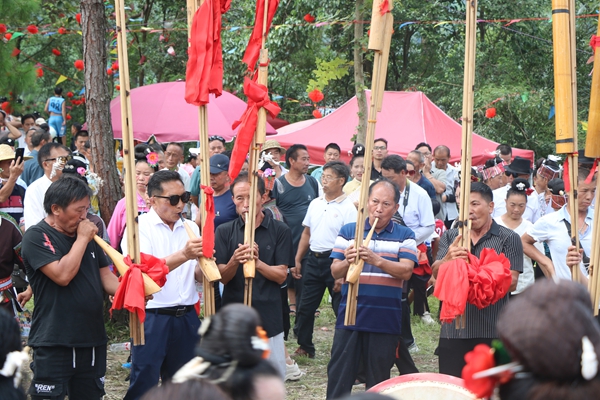 近期,施秉縣馬號鎮(zhèn)黃古村的傳統(tǒng)節(jié)日“求雨節(jié)”熱鬧非凡,當?shù)厝罕娚碇褡迨⒀b齊聚現(xiàn)場,吹蘆笙、唱苗歌,濃厚的民俗文化氛圍吸引了周邊幾百余村民及游客的參與。