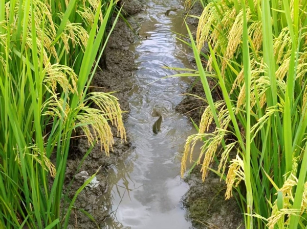 從白色的水桶中可以看到,捕獲的魚兒體格健壯,顯示出良種良法推廣項(xiàng)目的良好成效。據(jù)了解,此次漁業(yè)養(yǎng)殖良種良法推廣項(xiàng)目,采用了水稻與魚類共生的生態(tài)種養(yǎng)模式。一方面,水稻為魚類提供了棲息、避蔭的場(chǎng)所;另一方面,魚類的活動(dòng)不僅能疏松土壤,其排泄物還能為水稻生長(zhǎng)提供天然肥料,實(shí)現(xiàn)了“一水兩用、一田雙收”,有效提高了土地利用率和農(nóng)業(yè)綜合效益。
