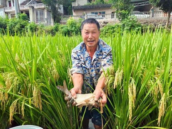在測(cè)產(chǎn)驗(yàn)收現(xiàn)場(chǎng),金黃飽滿的稻穗隨風(fēng)搖曳,田間的溝渠里,魚兒歡快游動(dòng)。工作人員深入稻田,嚴(yán)格按照測(cè)產(chǎn)驗(yàn)收標(biāo)準(zhǔn)和程序,對(duì)稻田養(yǎng)魚的產(chǎn)量、魚的規(guī)格等指標(biāo)進(jìn)行了細(xì)致測(cè)量與統(tǒng)計(jì)。村民們也積極參與其中,一位參與項(xiàng)目的村民,滿臉喜悅地從稻田里捧出肥碩的大魚,豐收的喜悅溢于言表。