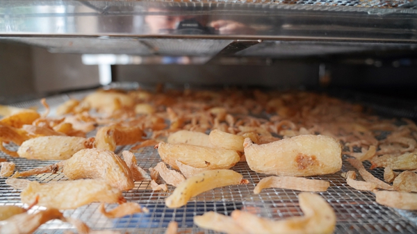 跟隨運(yùn)送天麻的車輛,記者走進(jìn)這座現(xiàn)代化的加工廠。生產(chǎn)線上,鮮天麻的第一站是“氣泡清洗機(jī)”。伴隨著水流的輕柔翻滾,天麻表面的泥土與雜質(zhì)被徹底剝離,露出其飽滿細(xì)膩的肉質(zhì)。這看似簡單的一步,卻是告別傳統(tǒng)手工清洗、確保原料潔凈無污染的關(guān)鍵開端。