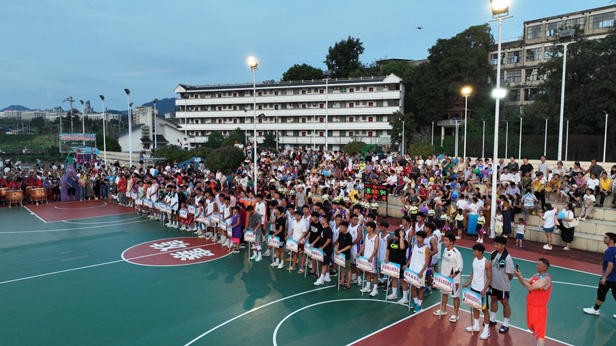 裁判員與運動員代表的宣誓鏗鏘有力,隨著領導宣布賽事開幕,絢爛煙花在體育館上空綻放,與周邊亮江畫廊的夜色交相輝映。這場延續(xù)四年的籃球傳統(tǒng),早已超越賽事本身——就像村民口中的“比過年還熱鬧”,它成了敦寨人共赴的文明約定,是“村”級品牌矩陣里獨具特色的“體育名片”。