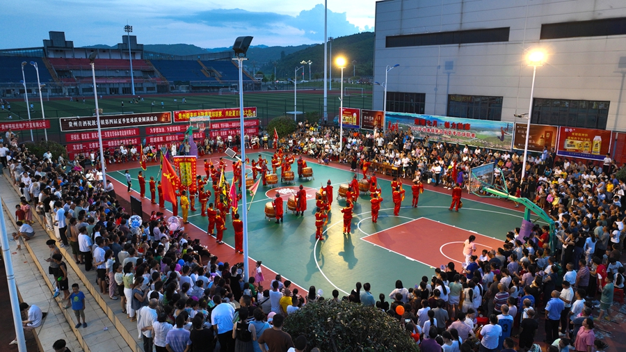 開幕式的文藝表演,堪稱一場黔東南文化的微縮秀。雷屯朱氏宗祠帶來的《雷屯軍屯戰(zhàn)鼓》,將百年軍屯文化的豪情融入鼓點,讓人想起“村歌”里傳唱的歷史記憶;敦寨鎮(zhèn)文藝青年魏友娟演唱的《侗歌聲聲唱給黨》,用純美的唱腔串聯(lián)起傳統(tǒng)與現(xiàn)代;而幼兒園孩子們的《籃球操1234》,則像“村花”般綻放著鄉(xiāng)村未來的活力。