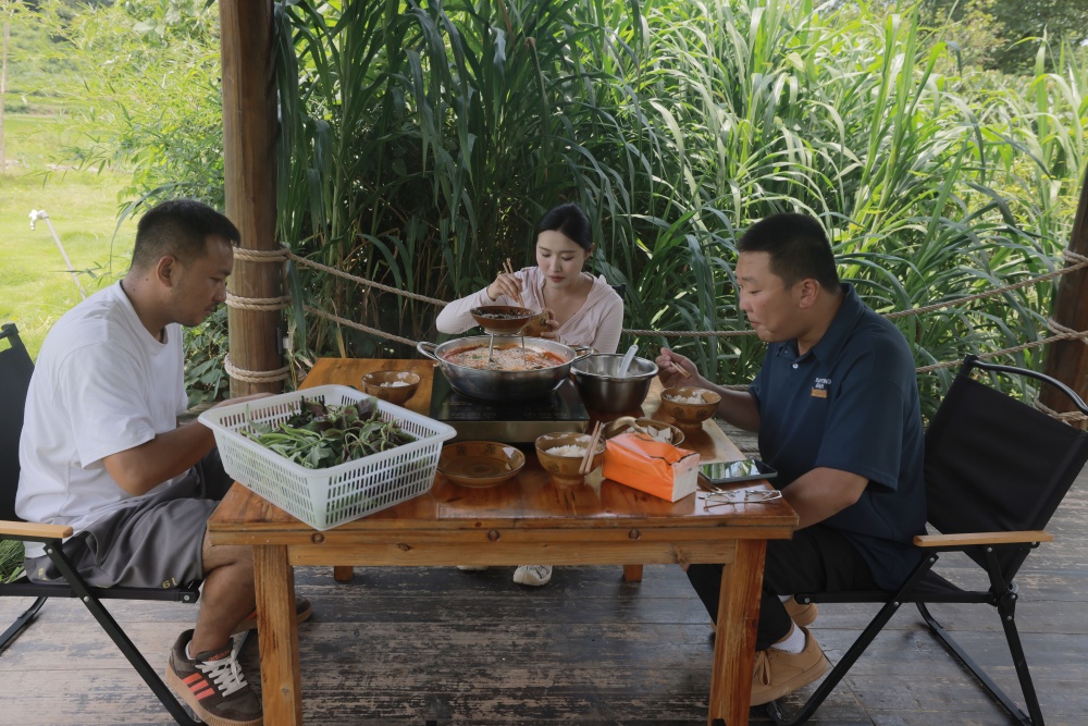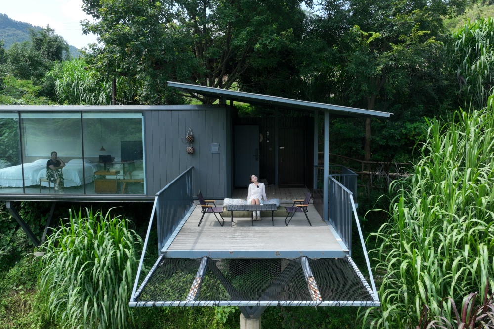 田邊邊溪野度假營集山居、餐飲、親水項(xiàng)目于一體。負(fù)責(zé)人牛卓卡介紹,度假營創(chuàng)新采用“水陸聯(lián)動”模式:白天體驗(yàn)親水運(yùn)動,夜晚無縫銜接苗寨篝火晚會與民俗活動?!白罱?間房天天滿員,成功打破了以往‘半日游’的困局?!?/p>