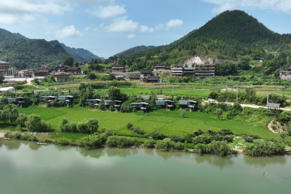 清晨,薄霧籠罩下的清水江畔,位于卡烏村的“田邊邊溪野度假營”已迎來首批游客。孩子們拎著水槍奔向淺灘,年輕人腳踏槳板順流而下,歡笑聲與潺潺水聲交織成趣。