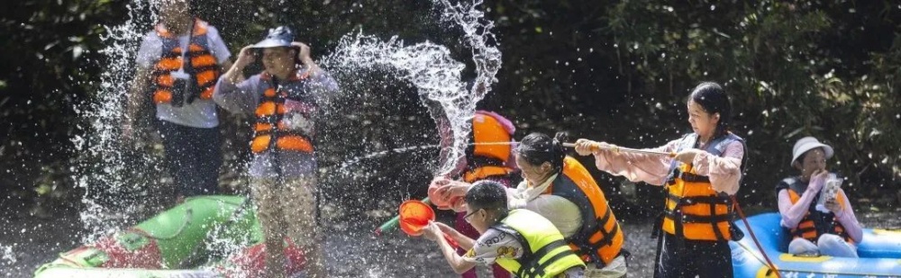 在施秉縣杉木河景區(qū),清澈見底的河水蜿蜒于峽谷之間,兩岸植被郁郁蔥蔥,為炎炎夏日帶來絲絲涼意。這里的漂流項(xiàng)目備受親子家庭青睞,平緩河段適合全家輕松戲水,時(shí)而出現(xiàn)的湍急水流則增添了刺激與歡樂。“太好玩啦!坐在皮筏艇上,一會兒慢悠悠地漂,一會兒又沖下小急流,濺起好大的水花,和爸爸媽媽一起玩太開心了!” 來自重慶的小朋友張宇軒興奮地說道。家長們也表示,在漂流過程中,既享受了親子互動的樂趣,又能欣賞到如畫的自然風(fēng)光,一舉兩得。景區(qū)還配備專業(yè)護(hù)漂員全程護(hù)航,確保游客安全,讓家長們放心。