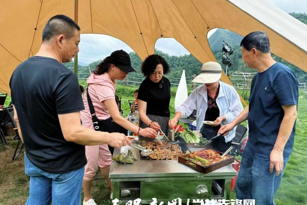 牧野谷的熱鬧帶活了棉席村。閑置老屋入股的村民能按比例分紅,十多位村民在此做保潔、當(dāng)農(nóng)耕向?qū)旯ゅX?!耙郧袄衔菘罩€得花錢修,現(xiàn)在不光拿分紅,種的菜也能賣給客人!”老潘笑得合不攏嘴。