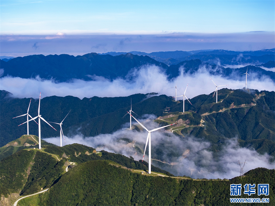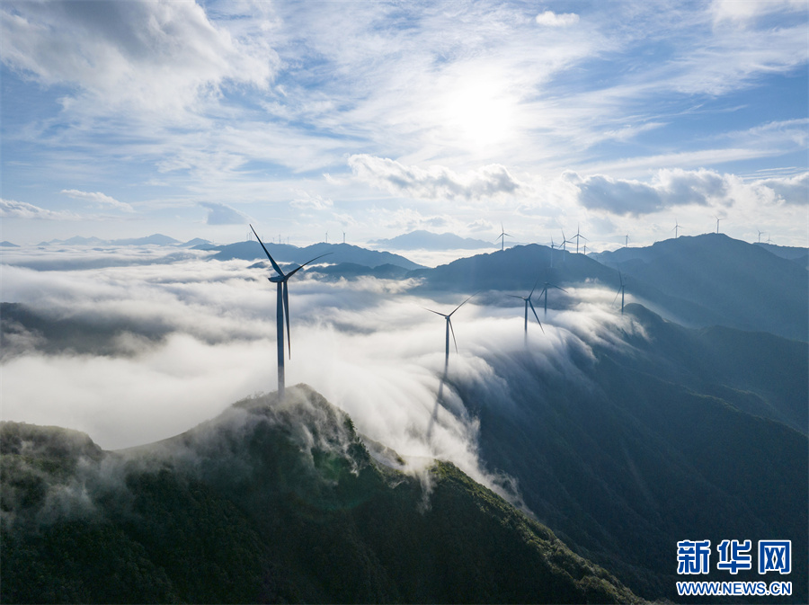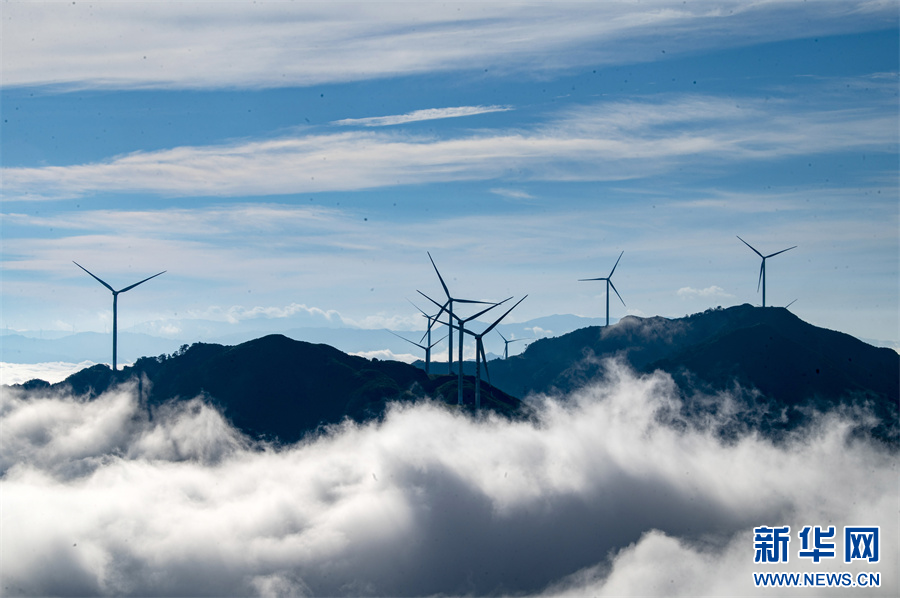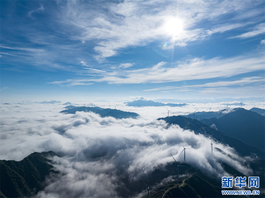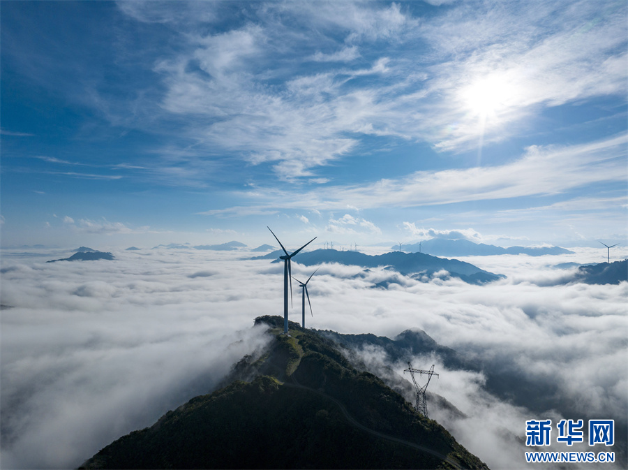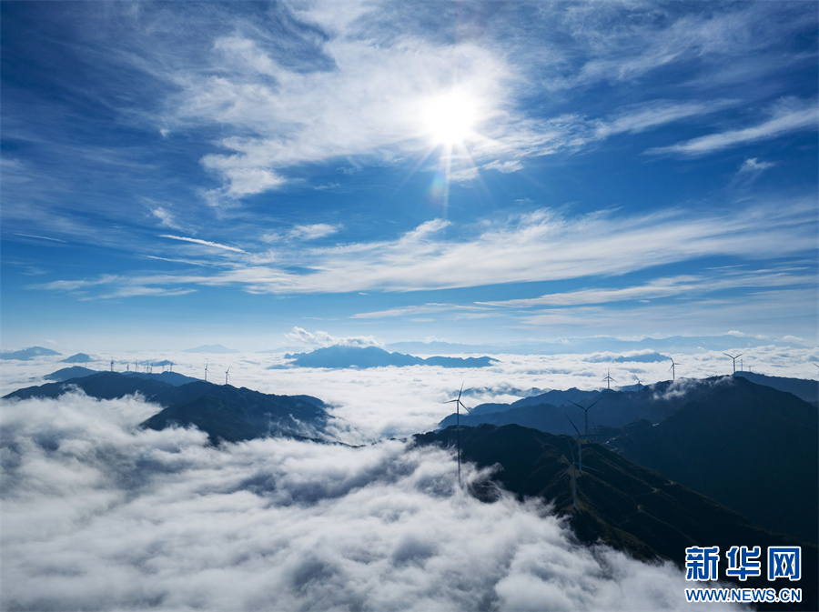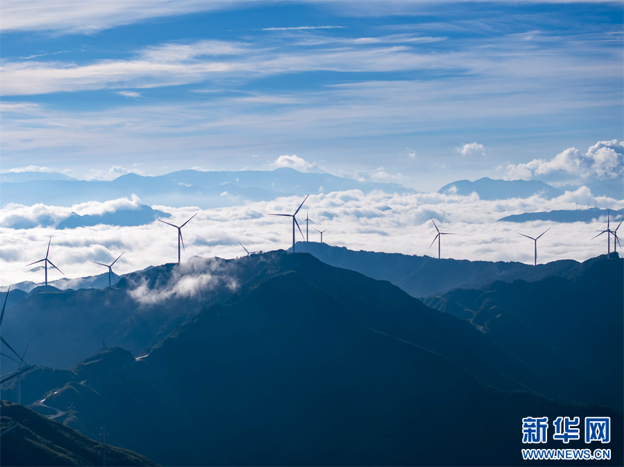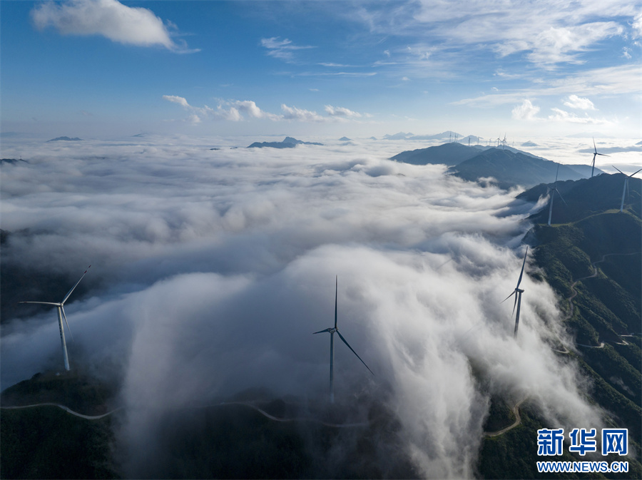 ?當(dāng)日清晨,貴州省黔東南苗族侗族自治州從江縣加榜鄉(xiāng)達(dá)棒山風(fēng)電場(chǎng)出現(xiàn)壯美云海景觀。一座座白色風(fēng)機(jī)矗立在連綿的山脊上,巨大的葉片劃破云海悠然旋轉(zhuǎn),與遠(yuǎn)山、藍(lán)天共同構(gòu)成一幅生態(tài)與科技交融的美麗畫卷。