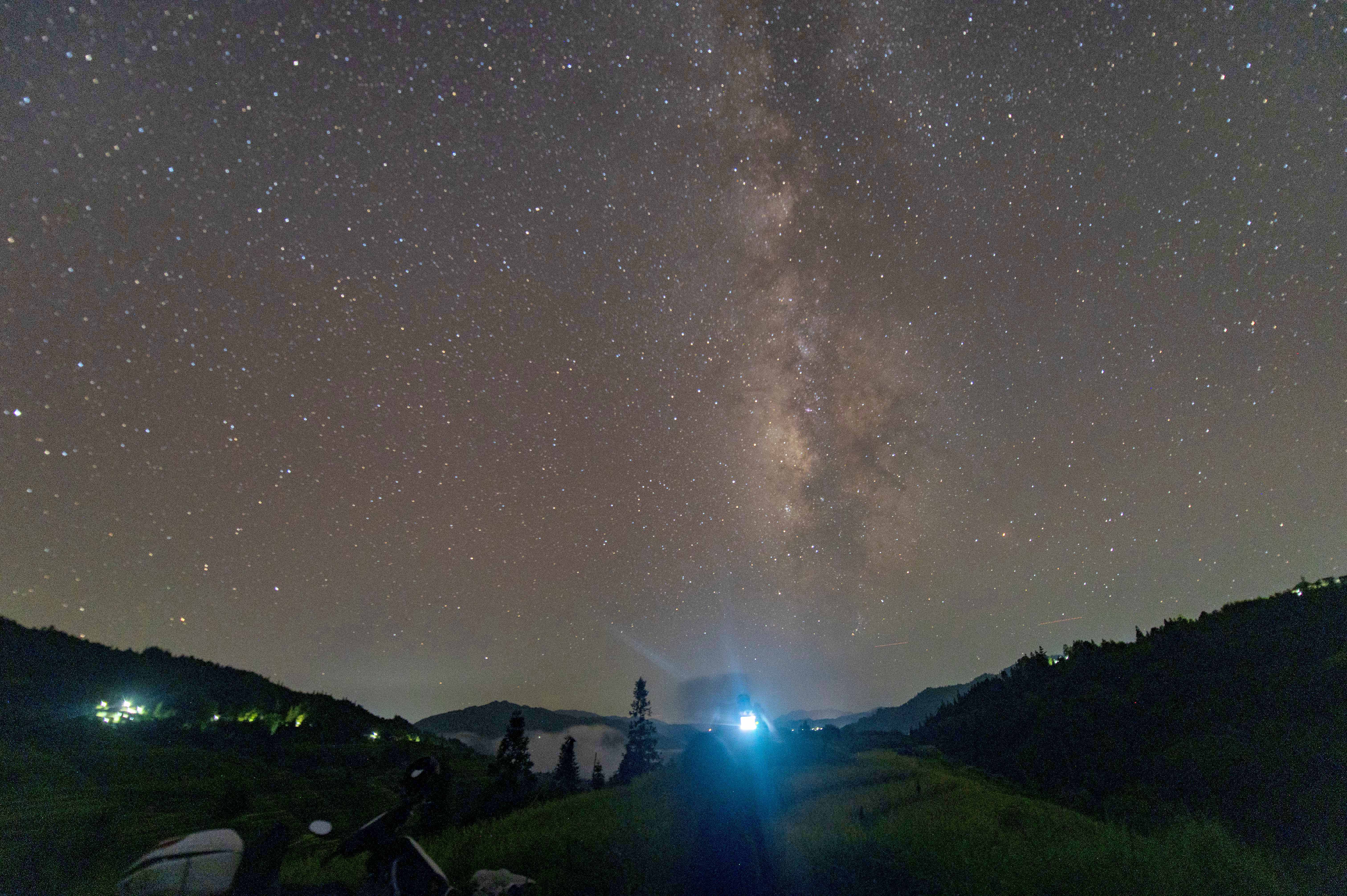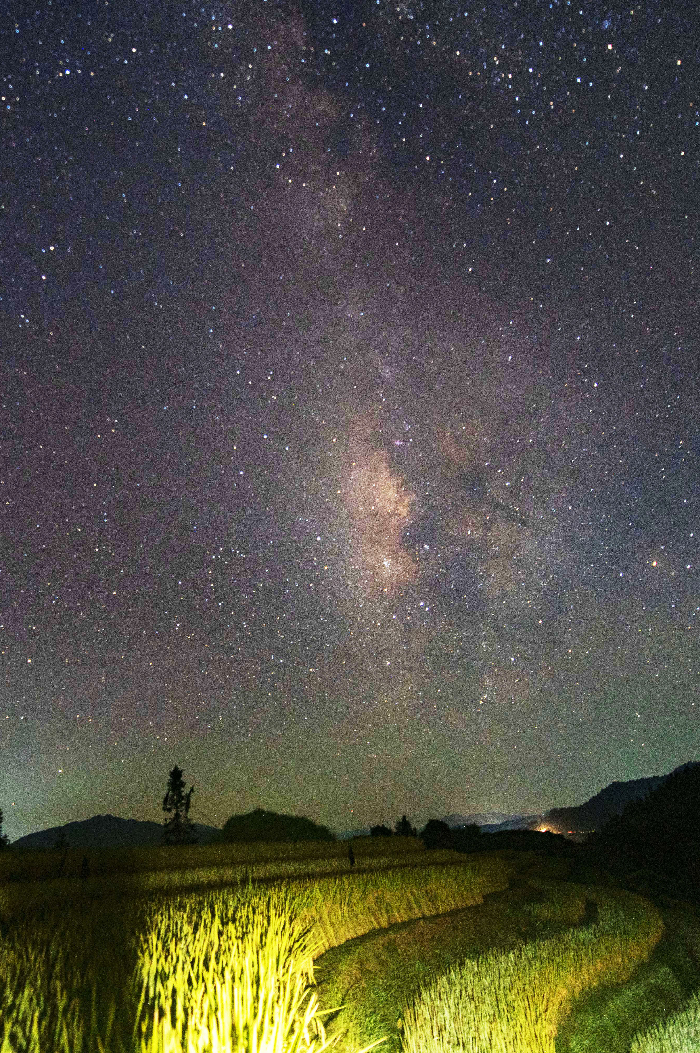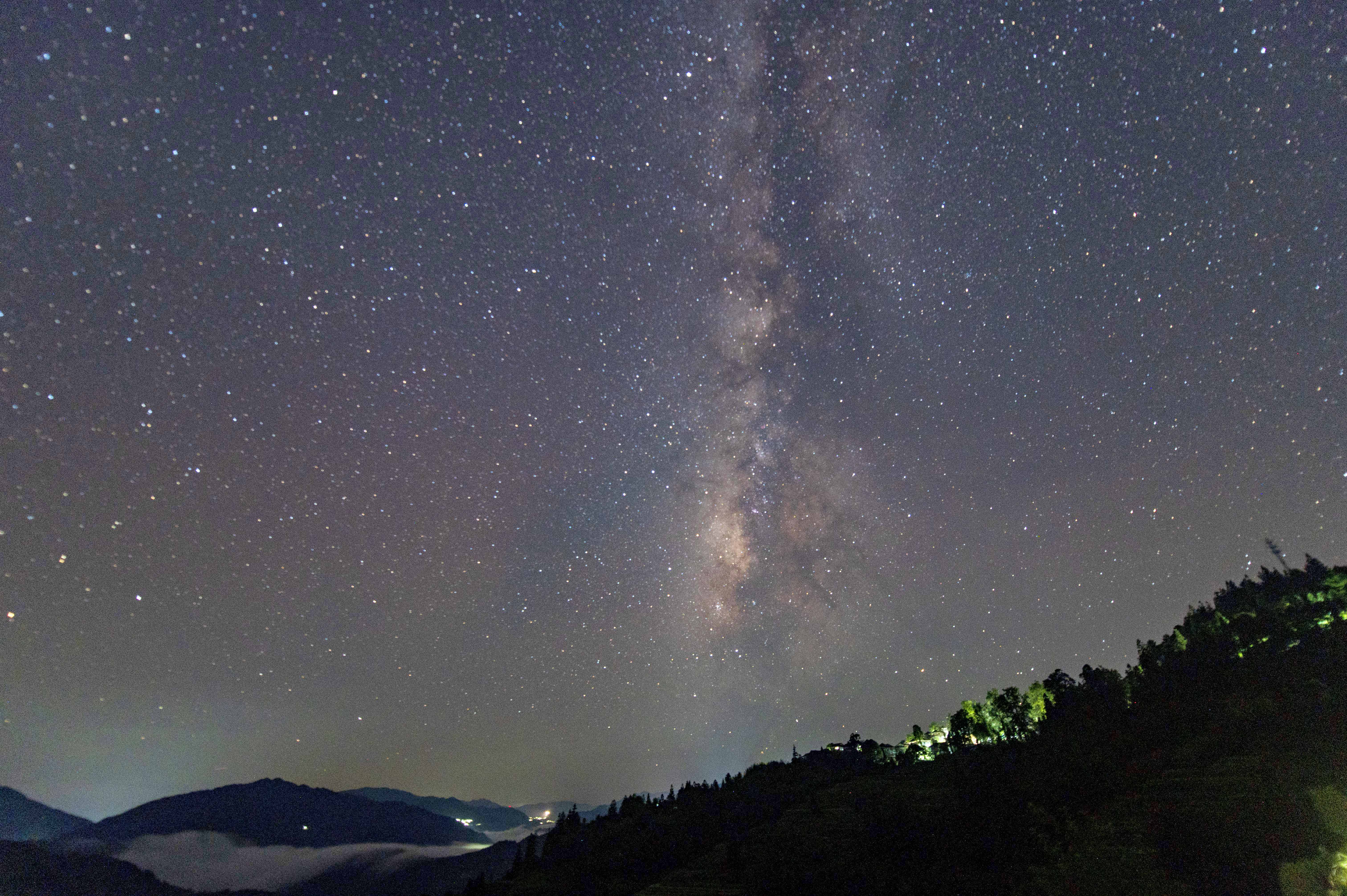 初秋時節(jié),貴州省黔東南苗族侗族自治州從江縣東朗鎮(zhèn)出現(xiàn)令人驚嘆的自然景觀。銀河如練,弦月高懸,云海翻騰,與千年梯田的蜿蜒、傳統(tǒng)村落的靜謐交相輝映,共同織就了一幅如夢似幻的山水畫卷。