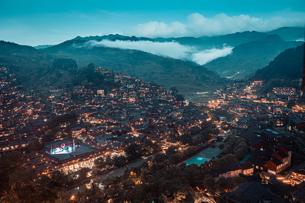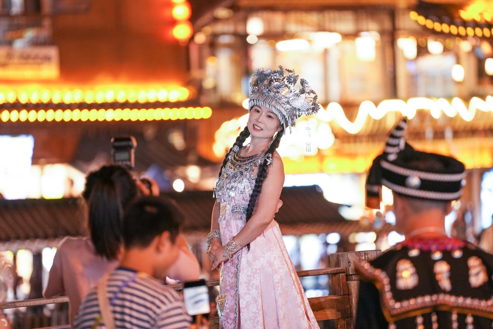 清晨,薄霧氤氳中的吊腳樓宛如仙境;入夜,華燈星星點點,讓這個中國乃至全世界最大的苗族聚居村寨,燦爛成如黛群山中的盛景繁華。