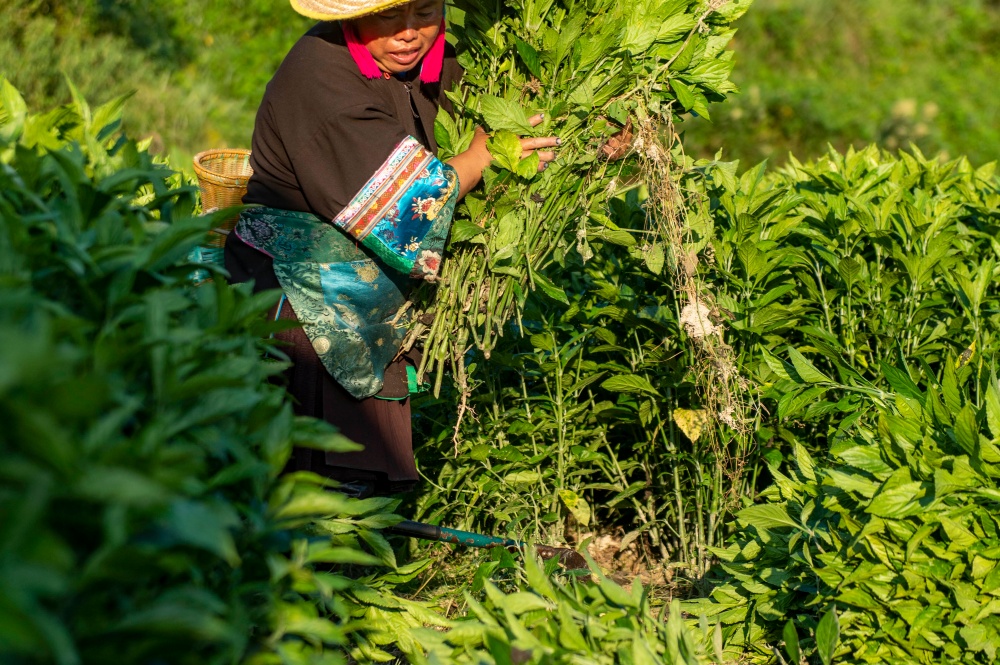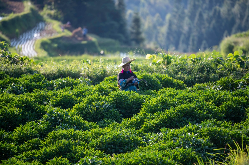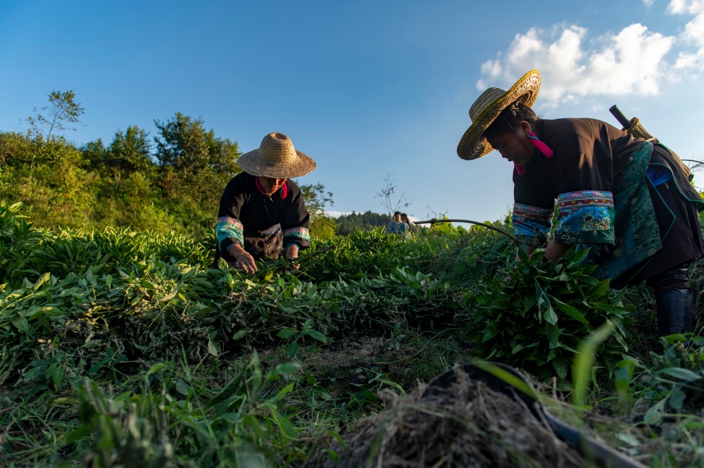 9月16日,在貴州省從江縣東朗鎮(zhèn)苗谷村,村民在采收板藍根。