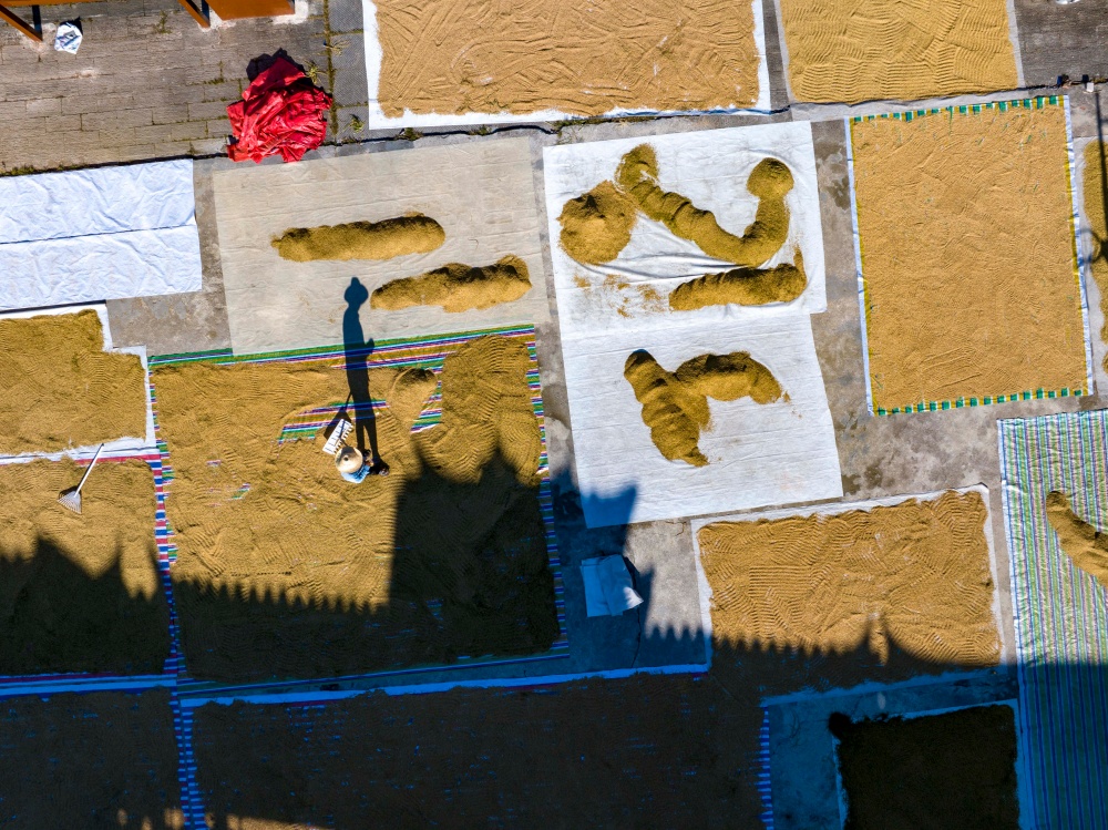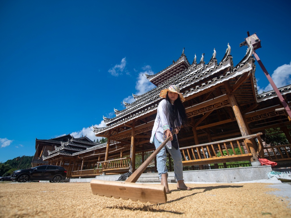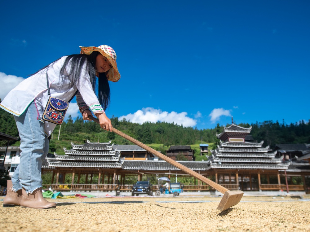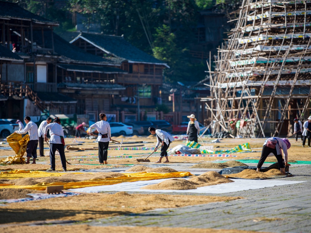 金秋時節(jié),貴州省黔東南苗族侗族自治州從江縣喜獲豐收,農(nóng)民搶抓農(nóng)時收割,及時晾曬,確保顆粒歸倉。