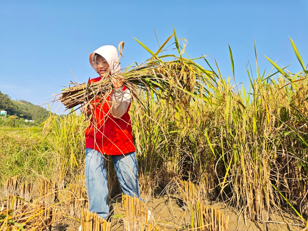 “這是我第一次體驗(yàn)收割稻子,真正體會(huì)到農(nóng)事勞動(dòng)的艱辛和糧食的來(lái)之不易,也更加理解了奉獻(xiàn)與互助的意義?!敝驹刚咛茖W(xué)詩(shī)在勞動(dòng)間隙感慨道。