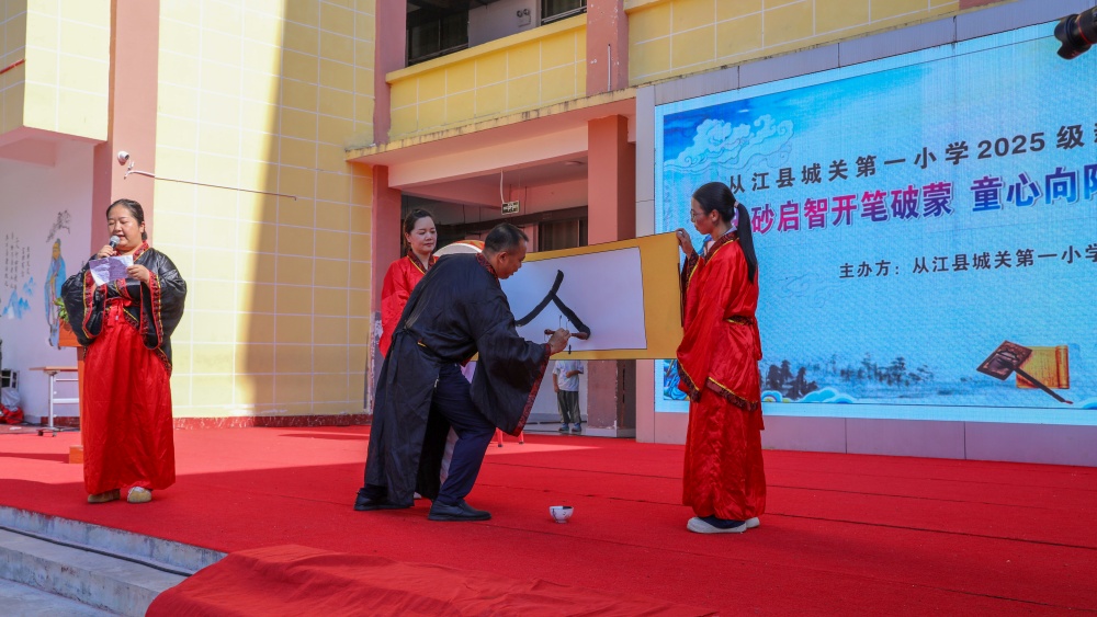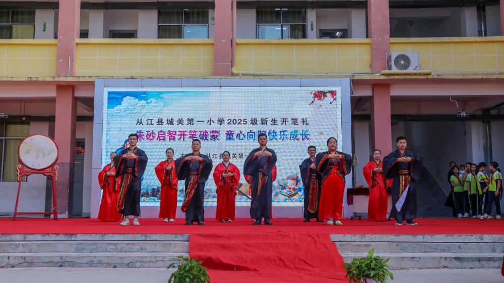 2025年9月18日上午,從江縣城關(guān)第一小學為一年級新生舉辦了一場莊重典雅、意蘊深厚的“開筆禮”儀式。學校領導班子成員、一年級全體師生及家長共400余人齊聚校園,共同見證了這一傳統(tǒng)與現(xiàn)代教育相融合的成長時刻。