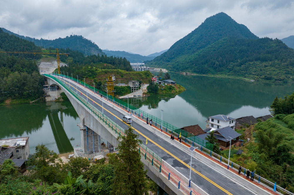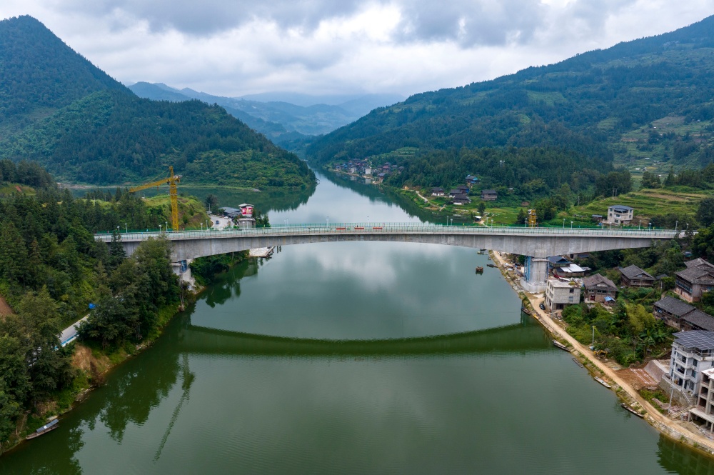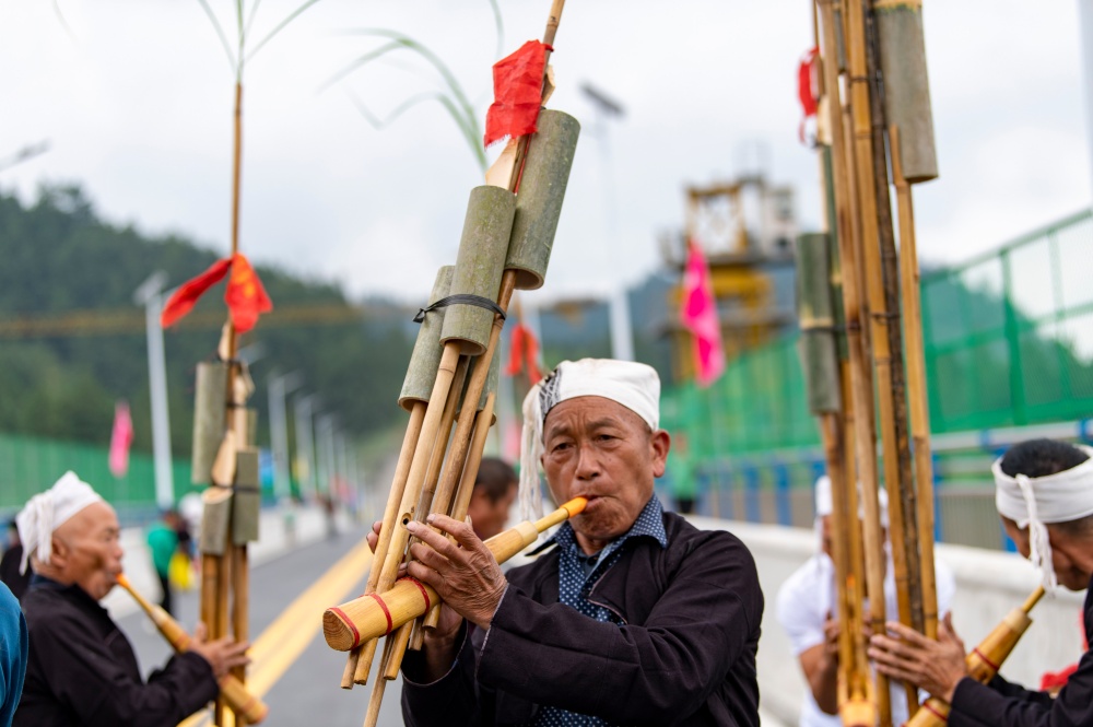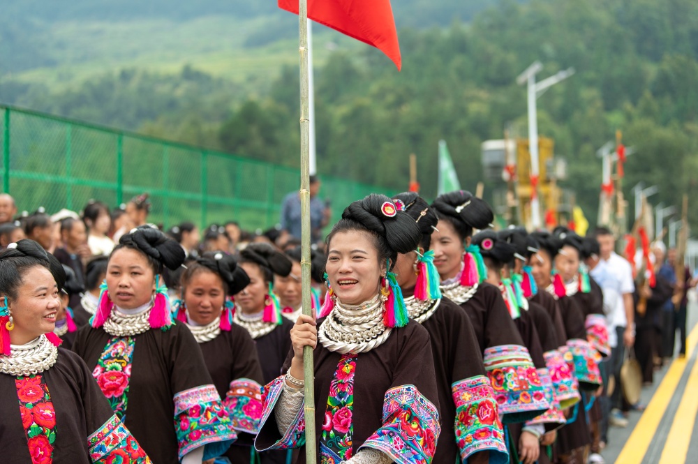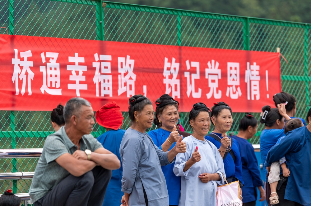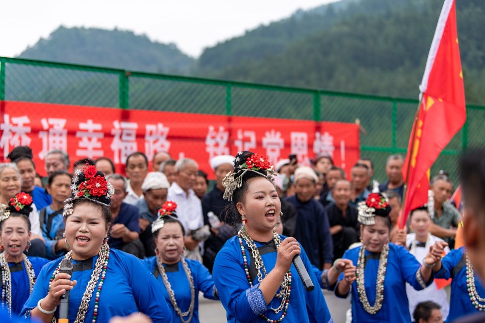 9月22日,在貴州省從江縣下江鎮(zhèn)孖溫村,苗侗同胞在孖溫大橋載歌載舞歡慶大橋通車。