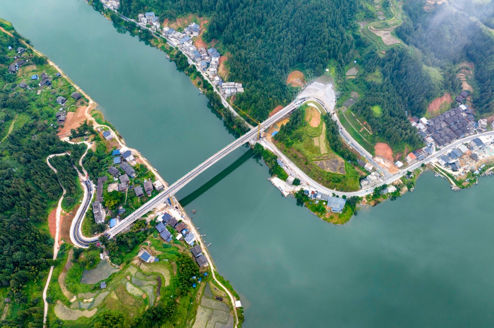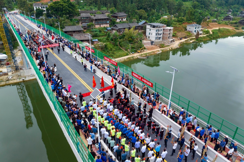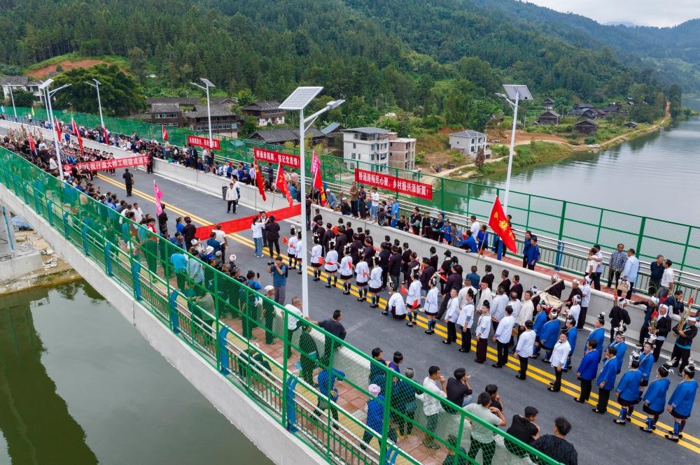 當(dāng)日,貴州省黔東南苗族侗族自治州從江縣下江鎮(zhèn)孖溫大橋建成通車。當(dāng)?shù)孛缍蓖园l(fā)涌上橋面載歌載舞慶祝大橋通車。