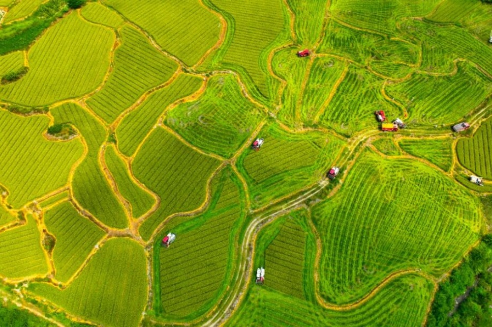 岑鞏縣作為貴州唯一的國家級水稻制種大縣,年產(chǎn)稻種占全省總量的80% 以上。2025年,全縣4.23萬畝訂單制種田預(yù)計產(chǎn)出稻種876萬余公斤,可滿足900萬畝稻田的用種需求,預(yù)計總產(chǎn)值將突破2.6億元。今年是“十四五”規(guī)劃收官之年,也是鞏固拓展脫貧攻堅成果同鄉(xiāng)村振興有效銜接 5年過渡期的最后一年,岑鞏縣水稻制種的豐收,不僅為當?shù)剞r(nóng)業(yè)增產(chǎn)、農(nóng)民增收注入強勁動力,更是全國農(nóng)業(yè)豐收圖景中的一抹亮色。在第八個中國農(nóng)民豐收節(jié),讓我們共同分享這份喜悅,期待來年再獲豐收。