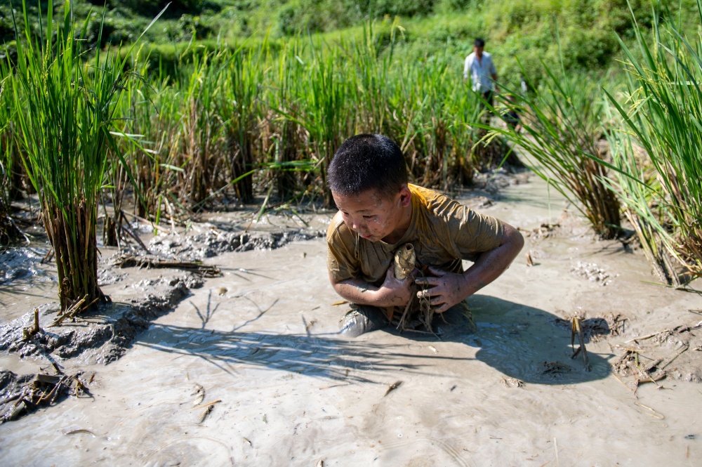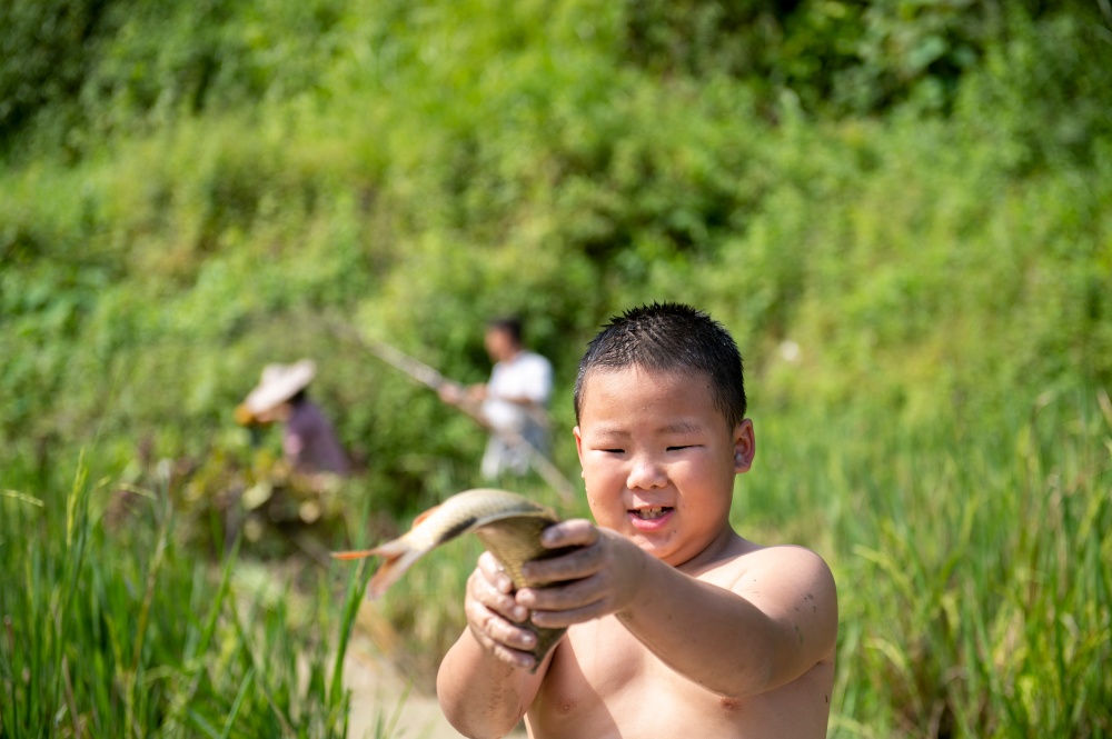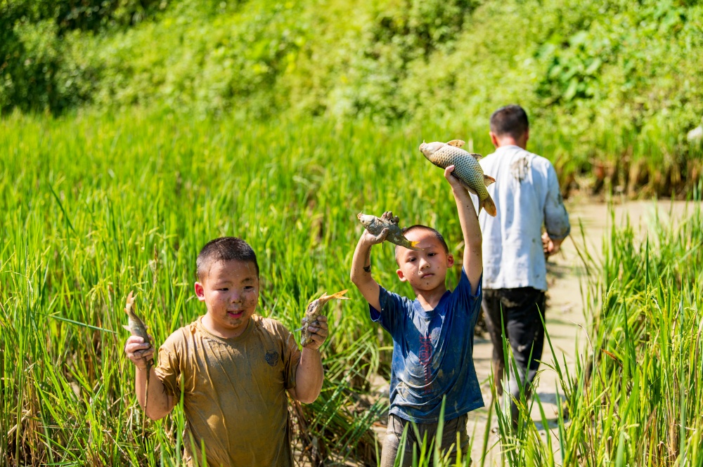 當日,在貴州省黔東南苗族侗族自治州從江縣下江鎮(zhèn)巨洞村,眾多游客和村民走進田間,卷起褲腿,徒手捕魚,在歡聲笑語中感受農(nóng)耕文化的樂趣,樂享國慶假期。