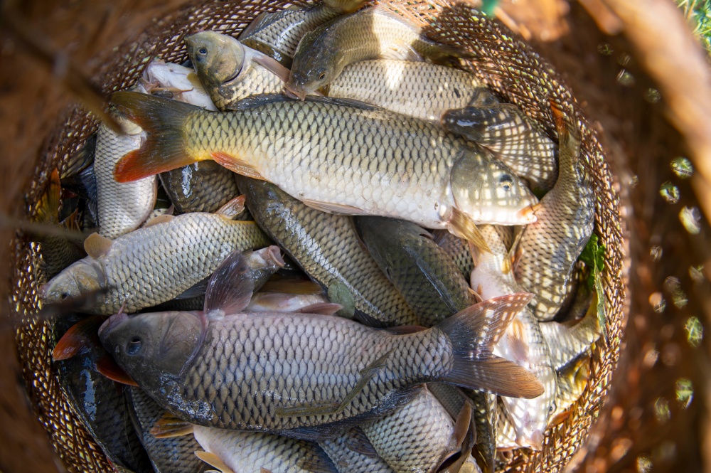 10月4日,在貴州省從江縣下江鎮(zhèn)巨洞村,村民在搬運抓到的稻花魚。