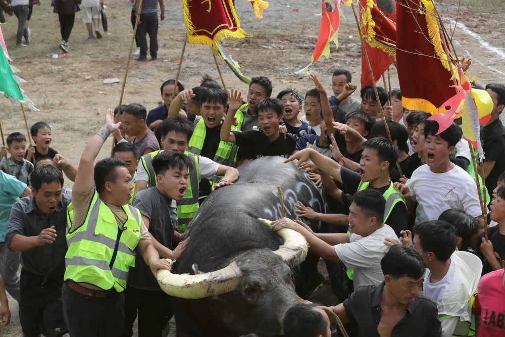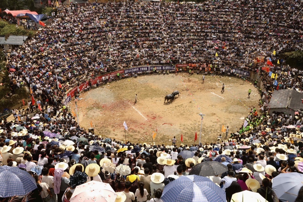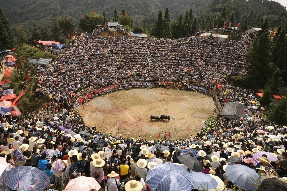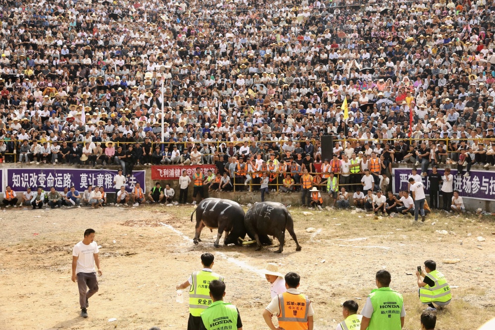 當(dāng)日,貴州省黔東南苗族侗族自治州榕江縣古州鎮(zhèn)八吉片區(qū)松月斗牛協(xié)會在松月斗牛塘舉行民俗斗牛歡度國慶中秋“雙節(jié)”活動,斗?,F(xiàn)場吸引了周邊村寨的眾多村民和游客前來觀看,當(dāng)天有榕江、從江兩縣的26對斗牛上場角逐,場面熱鬧非凡。當(dāng)?shù)赝ㄟ^舉行民俗傳統(tǒng)斗?;顒?,促進(jìn)鄉(xiāng)村旅游業(yè)發(fā)展。