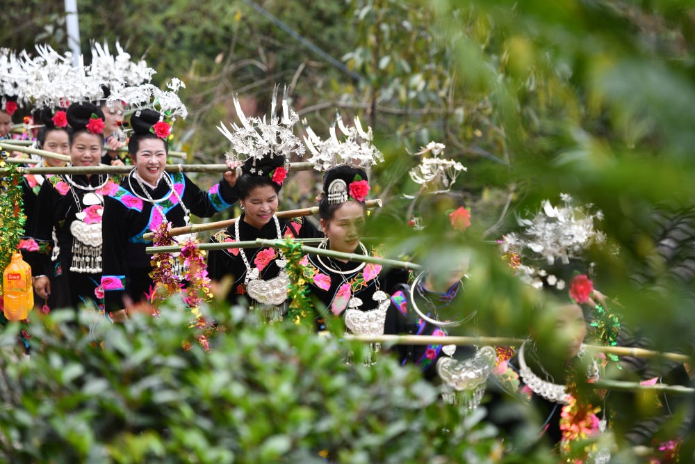 慶典這天,80多位姑媽穿著盛裝回了家,銀冠上的流蘇隨著腳步晃,圍著新球場跳蘆笙舞、唱苗歌,歌聲飄到山谷里,引得溪邊的水鳥撲棱著翅膀飛。
