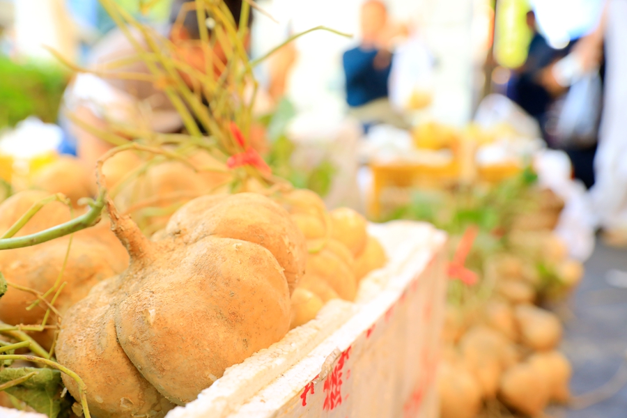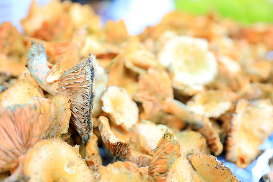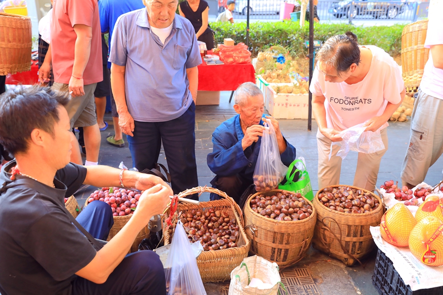 從田間剛收的嫩姜、山澗新采的板栗再到還帶著泥土氣的樅樹(shù)菌、碼放整齊的的八月筍、涼薯等等,帶著劍河秋日氣息的山物匯聚于此,成為小城里最鮮活的秋日印記。