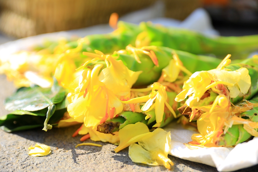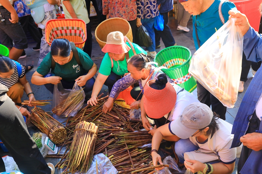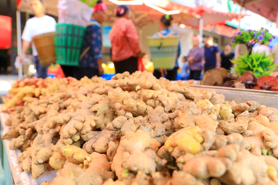 “我這梨來(lái)自于柳川,酸酸甜甜的很受消費(fèi)者的歡迎,都喜歡來(lái)我這里買(mǎi)?!睌傊鲗O德根指著滿(mǎn)筐梨,語(yǔ)氣里滿(mǎn)是自豪。在不遠(yuǎn)處的草果攤前,盛開(kāi)的草果散發(fā)著獨(dú)屬于它的芳香,靜待著顧客的選購(gòu)。攤主楊桂英說(shuō)“草果一年就一季,八、久月份開(kāi)花,曬干收起來(lái),煮雞、煮鴨、炒肉、燉豬腳都可以,香得很。”