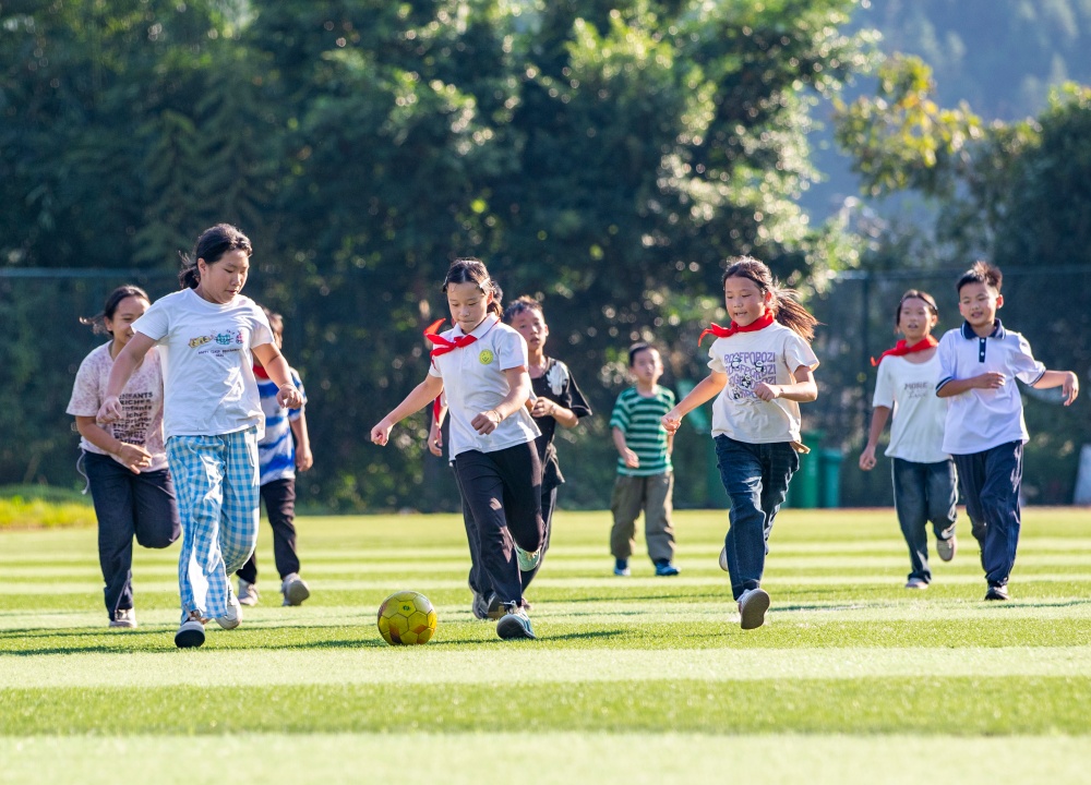 2025年10月17日,從江縣剛邊壯族鄉(xiāng)中心小學(xué)學(xué)生在進(jìn)行“班超”足球比賽。