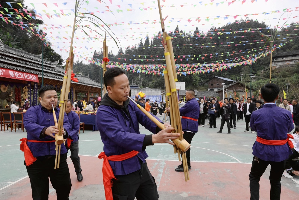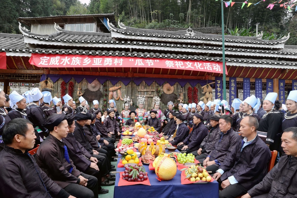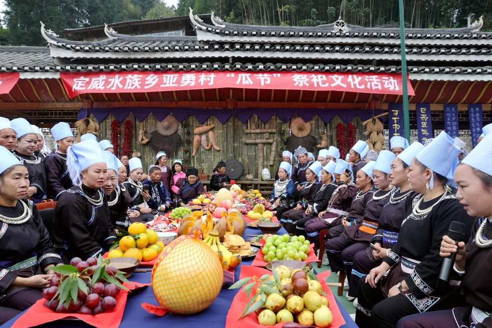10月25日,在貴州省黔東南苗族侗族自治州榕江縣定威水族鄉(xiāng)亞勇村,水族群眾在瓜節(jié)祭祀儀式上祈禱來(lái)年風(fēng)調(diào)雨順,幸福安康。