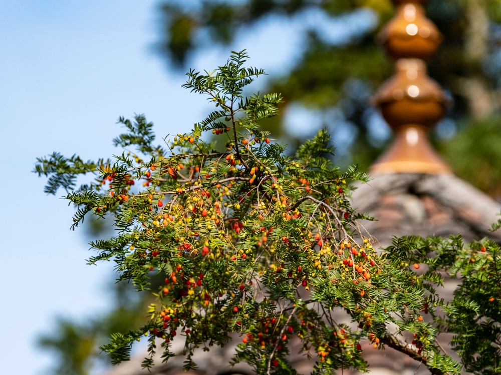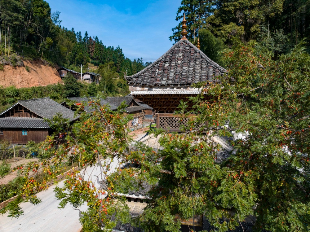 深秋時節(jié),貴州省黔東南苗族侗族自治州從江縣谷坪鄉(xiāng)銀下侗寨的百年紅豆杉果實紅遍枝頭,晶瑩剔透的紅色果實與古樸的侗寨建筑交相輝映,勾勒出一幅靜謐秀美的侗鄉(xiāng)畫卷。