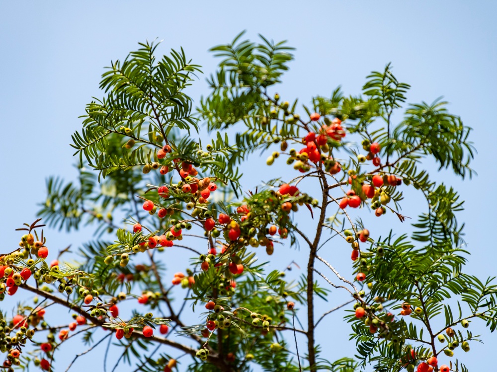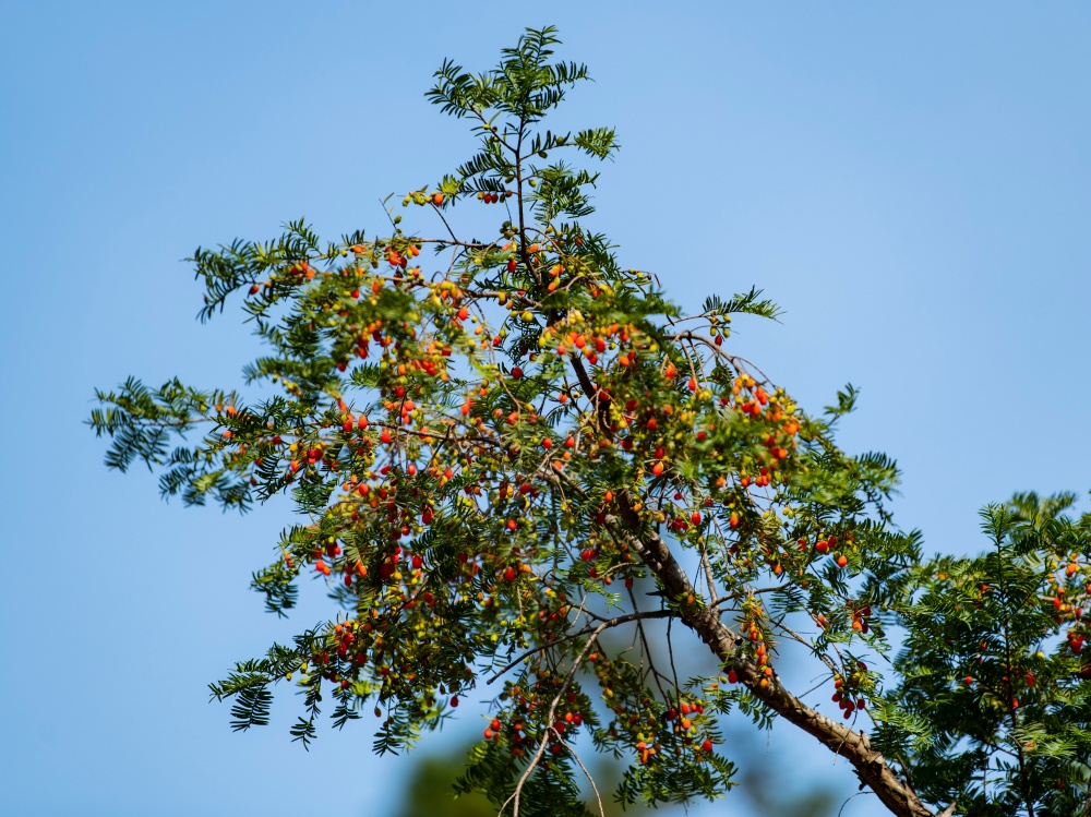 10月29日,在貴州省從江縣谷坪鄉(xiāng)銀下侗寨拍攝的國家一級珍稀瀕危物種野生紅豆杉果實。