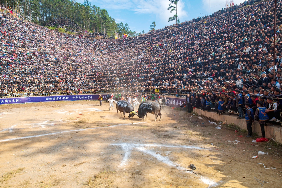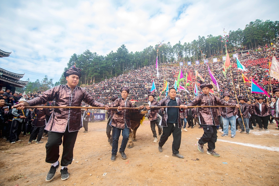 11月1日,從江縣往洞鎮(zhèn)九洞平樓牛塘舉行“貴州牛?超級(jí)?!倍放N幕^演暨民族團(tuán)結(jié)進(jìn)步宣傳教育專場(chǎng)活動(dòng)。通過開展斗牛觀演和民族文化展演等活動(dòng),促進(jìn)各民族交往交流交融,增強(qiáng)群眾對(duì)中華文化的認(rèn)同感和自豪感,構(gòu)筑中華民族共有精神家園。